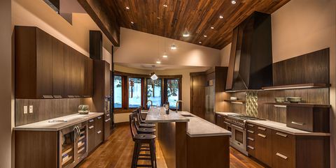 Tanto o forro branco quanto no tom de madeira natural são muito bem-vindos para o acabamento de uma cozinha moderna e elegante.