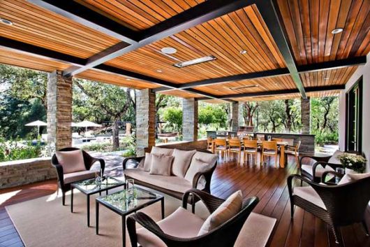 Entre os tipos de forros mais utilizadas no acabamento de varandas, os mais utilizados são os forros em tons naturais que podem ou não receber uma camada de verniz.