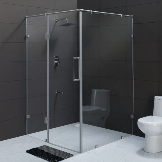 Geralmente com relação ao modelo de porta para o box de canto, são utilizados modelos de correr ou camarão, pois são opções que abrem para as laterais.