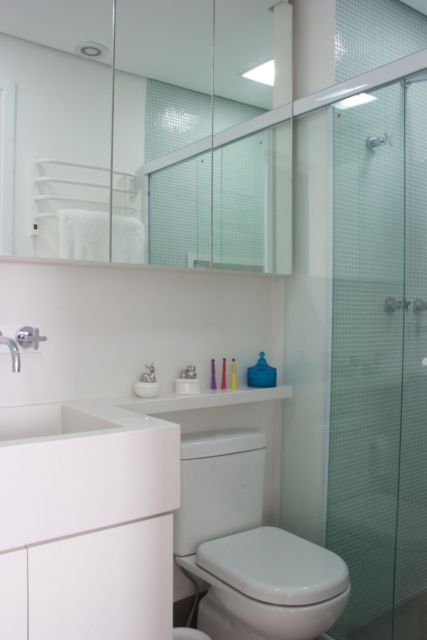 Para valorizar o espaço disponível o seu banheiro pequeno, nossa dica investir em um box de correr. Essa opção é perfeita pois economiza espaço dispensando a necessidade de um ângulo para abertura.