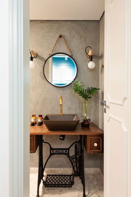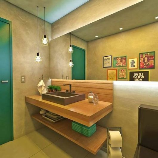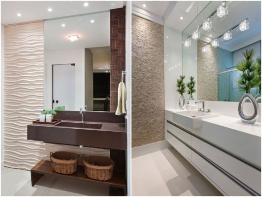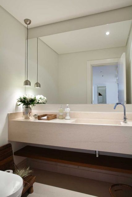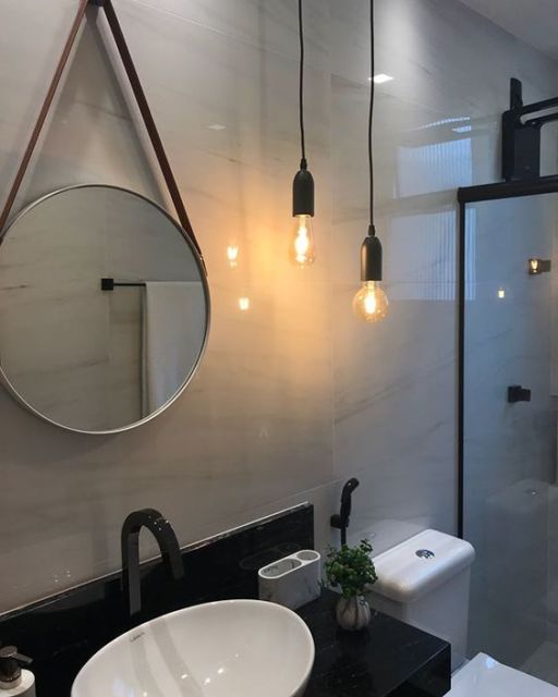 Além de melhorar a visão para utilizar o espelho, as luminárias nessa área do cômodo ajudam a destacar o item e valorizá-lo.