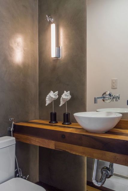 Por isso, unir o útil ao agradável se encaixa perfeitamente nessa questão. As luminárias para banheiro, por exemplo, dão um tom mais chique e sofisticado para a decoração.