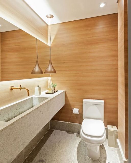 Esse estilo de luminária para banheiro é perfeito para quem quer uma decoração mais moderna e requintada.