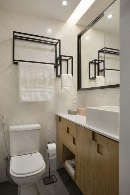 Além disso, a claridade ajudará a enriquecer a decoração sem carregar muito ou pesar nos enfeites para banheiro. Afinal, poluir visualmente o lugar potencializará a sensação de espaço pequeno.