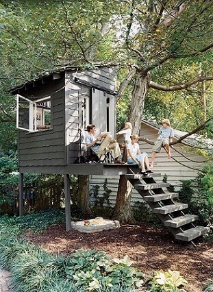 Atualmente, existem modelos de casa na árvore que servem tanto para as crianças brincarem quanto para comportar toda a família como moradia.