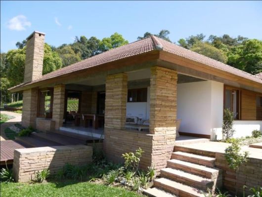 Um dos complementos ideais do estilo rústico, a madeira tem o poder de deixar qualquer local com ar mais acolhedor. Se a casa se localizar em um lugar com bastante verde, a madeira se integra perfeitamente ao ambiente, deixando a moradia mais aconchegante ainda!