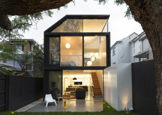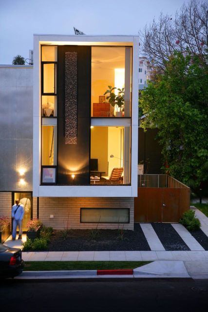 Note que sobrados compactos em terrenos estreitos são uma proposta simples e muito bonita de casas de vidro. Por possuir um tamanho menor o design descomplicado!