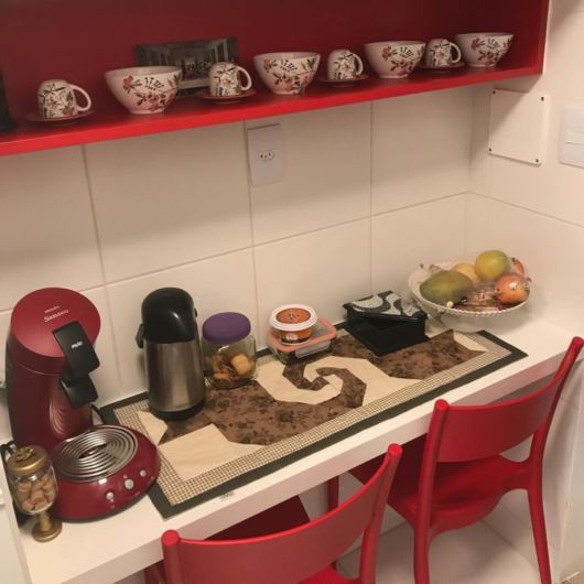 Se tiver um espacinho livre nesses ambientes, você pode inovar colocando um móvel específico para por canecas, copos, colheres, cafeteira, açúcar, adoçante, enfim, tudo o que é utilizado para tomar um bom café.