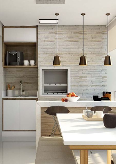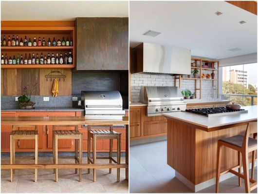 Já se você quer um espaço totalmente moderno e sofisticado, as opções em metal e embutidas são alternativas perfeitas. Dentre elas, você pode escolher entre elétrica, à carvão, gás ou à bafo.