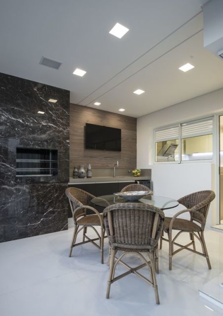Confira a seguir mais algumas fotos de projetos lindos de decoração com churrasqueira para apartamento para se inspirar!