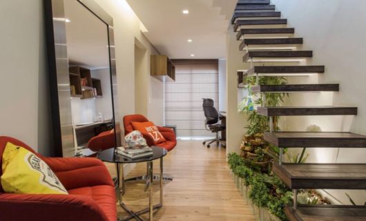 Atualmente, está super em alta aproveitar o espaço embaixo da escada para fazer um lindo jardim de inverno no hall de entrada. Essa é uma boa opção para deixar o ambiente ainda mais bonito e trazer um pouco da natureza para dentro de casa. Se você não possui muito tempo para cuidar das plantas, uma boa opção pode ser investir em plantas artificiais para criação do seu jardim.