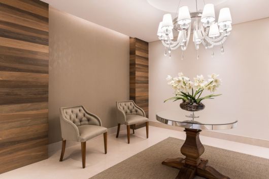 Os revestimentos para parede são outro detalhe que está em alta para decoração de hall de entrada luxuoso. Se você deseja fazer um revestimento especial na parede do seu hall de entrada, a dica é optar por um tipo de pedra ou por madeira.