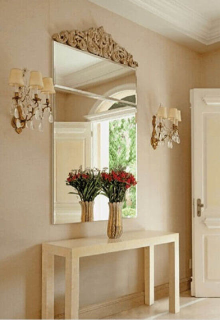 Os espelhos são elementos decorativos que mais estão em alta para decoração de hall de entrada hoje em dia. Além de ser um detalhe sofisticado, eles podem ser utilizados com a finalidade de causar a sensação de dimensões maiores para esse espaço.