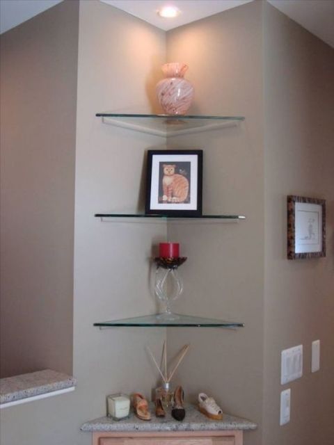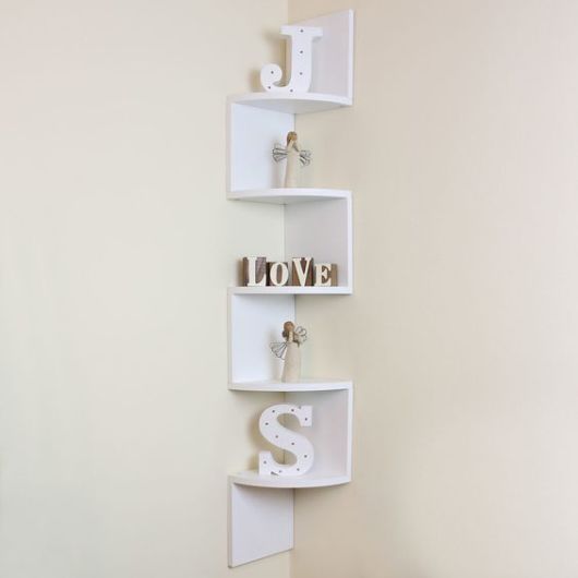 A grande sacada da prateleira de canto está em sua funcionalidade e praticidade de aproveitar melhor os espaços sem poluir o ambiente visualmente.