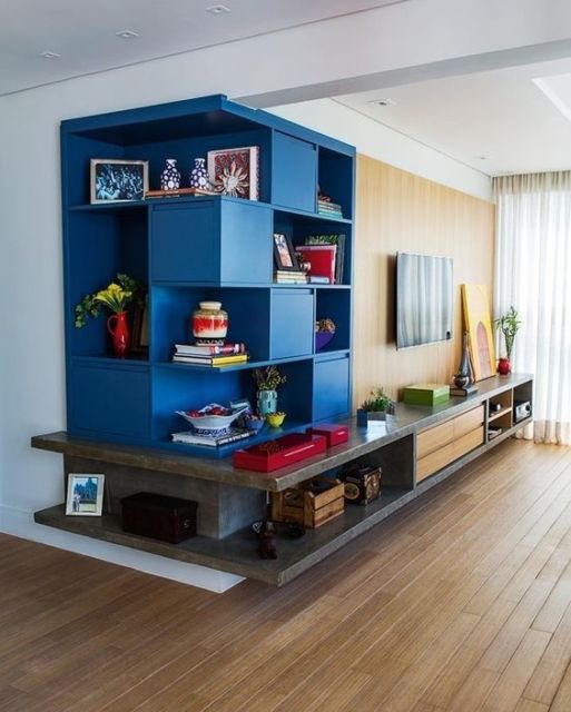 E que tal utilizar esse estilo de prateleira para posicionar sua TV de forma moderna e sofisticada? Além de ganhar espaço, você ainda dá um toque de originalidade em sua decoração!