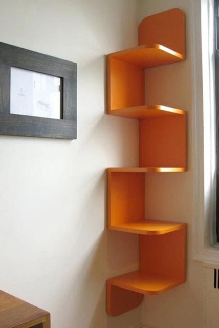 A grande sacada da prateleira de canto está em sua funcionalidade e praticidade de aproveitar melhor os espaços sem poluir o ambiente visualmente.