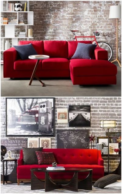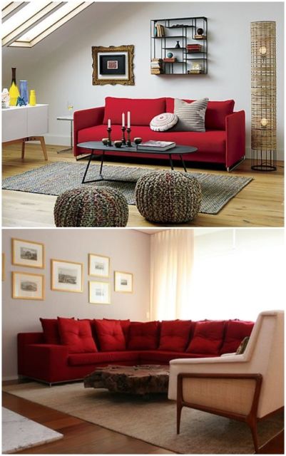 Outra tendência maravilhosa no universo da decoração é a criação de contrastes entre os móveis e cor das paredes. Escolher um tom vermelho para o sofá te abrirá um leque de opções para as paredes, de tons claros até os escuros e frios.