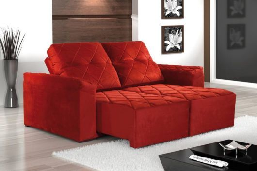 O sofá retrátil oferece ainda mais comodidade e conforto para locais como a sala de estar. A versão vermelha é perfeita para dar aquele ar de cinema ao cômodo, para maratonar seus filmes e séries favoritas ao lado de pessoas especiais!
