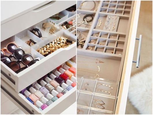 Essa dica é essencial para quem tem um espaço de arrumação no closet, como penteadeira ou local para se maquiar e se produzir.