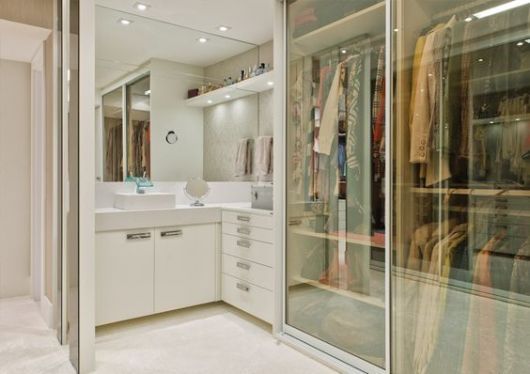 O closet é a saída perfeita para quem quer um cantinho particular para armazenar as coisas ou para se arrumar. Ele enriquece o ambiente visualmente e ainda ajuda a manter tudo no lugar.