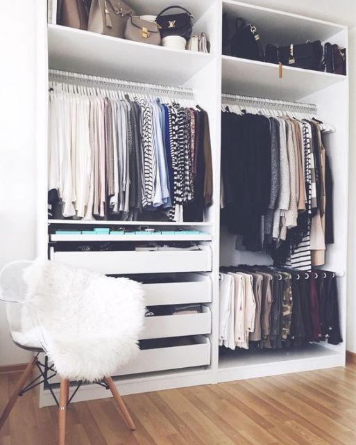 Cores claras destacarão as roupas e os itens, deixando o visual mais limpo e facilitando com que você encontre peças.