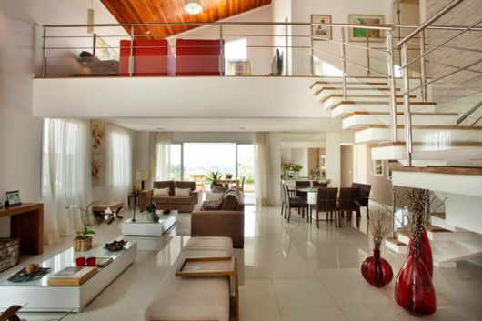 Mesmo que a casa seja térrea, mas tenha pé direito alto é possível fazer o mezanino. Outra característica marcante é o fato de ser todo aberto, podendo ver toda a casa de cima e ver todo o mezanino debaixo.