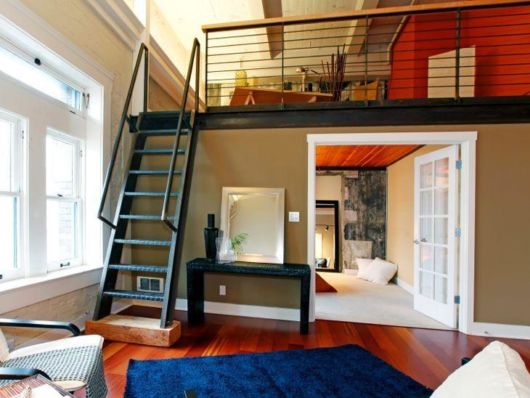 Outra vantagem do metal é para os casos de imóvel alugado. Com o pé direito duplo esse tipo de estrutura pode ser facilmente instalada e desinstalada, sem prejudicar a estrutura do ambiente.