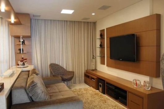 Outro ponto interessante é que existem modelos que possuem suporte para TV, gavetas e outras repartições funcionais. Ou seja, você ganha em espaço, beleza e organização para sua sala pequena!