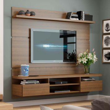 As opções de painéis vão de lisos, com suporte somente para TV, ou com prateleiras para decorar e organizar objetos.