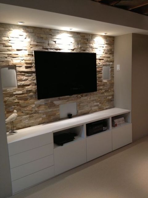 E que tal cobrir totalmente a parede e dar um novo visual para sua sala? Também é possível escolher o modelo de rack ideal para isso.
