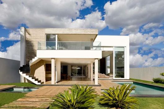 O telhado combinado com as cores utilizadas na fachada dessa casa, deixou o visual leve e clean.